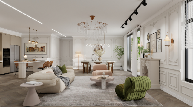 The 12 living room design ideas presented above encompass a variety of styles, including vintage, modern, natural, and minimalist luxury. Whether creating a tranquil atmosphere with soft lines, crafting a unique style with contrasting materials, or enhancing the space with decorative details, each design concept balances aesthetics and functionality and can be adapted to different apartment layouts, family structures, and lifestyles.